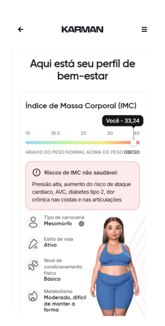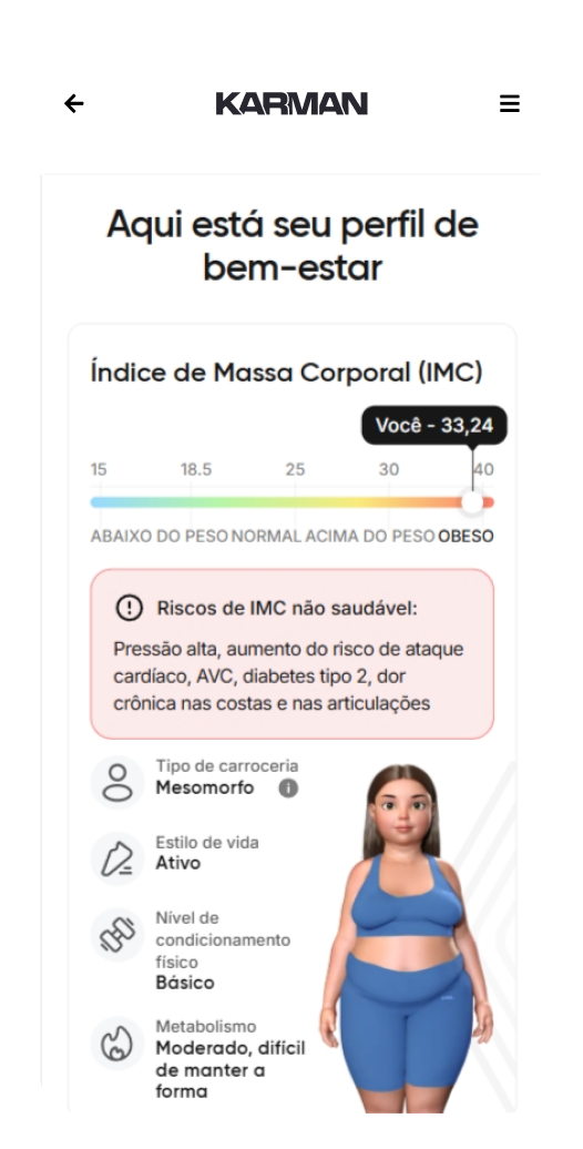 Na Karman você passa por avaliação médica criteriosa, recebe um plano individual e avança com acompanhamento real de profissionais. Tudo com segurança, ciência e constância, sem improviso, sem achismo e sem atalhos perigosos.